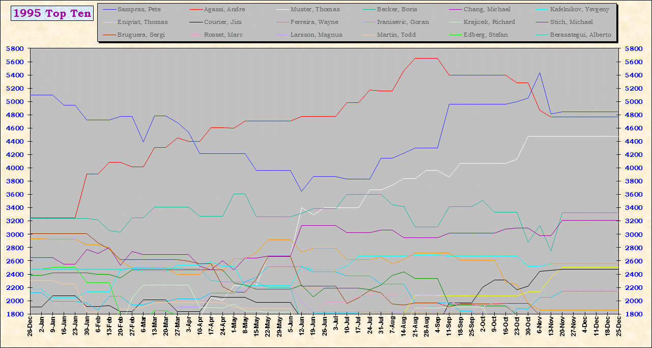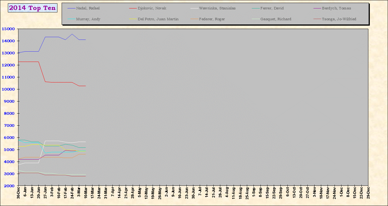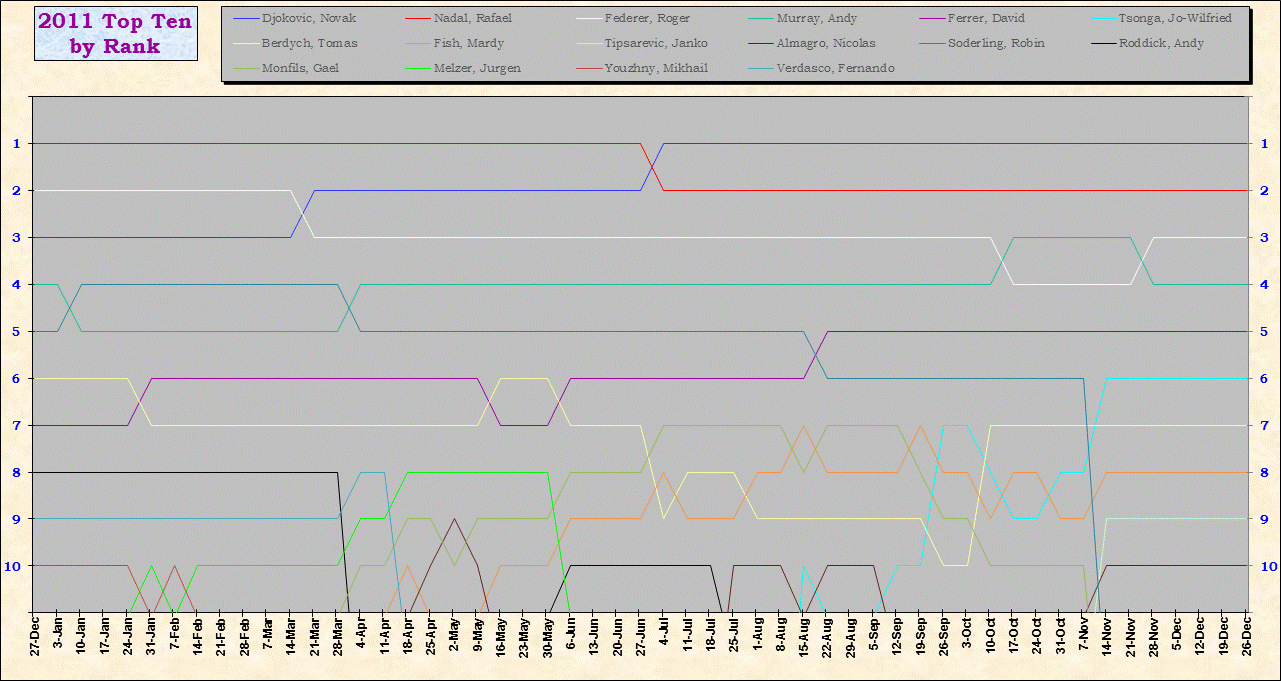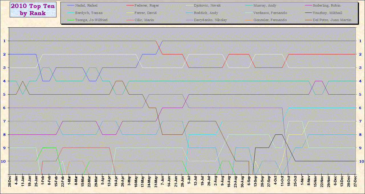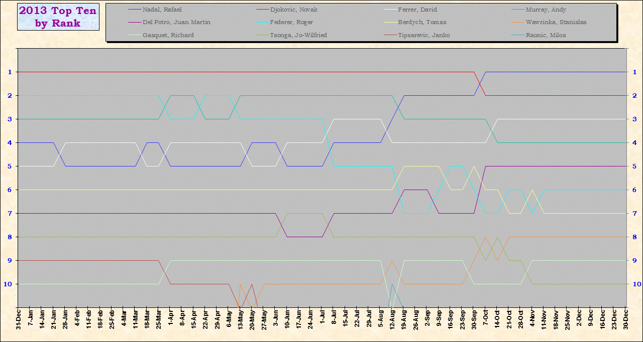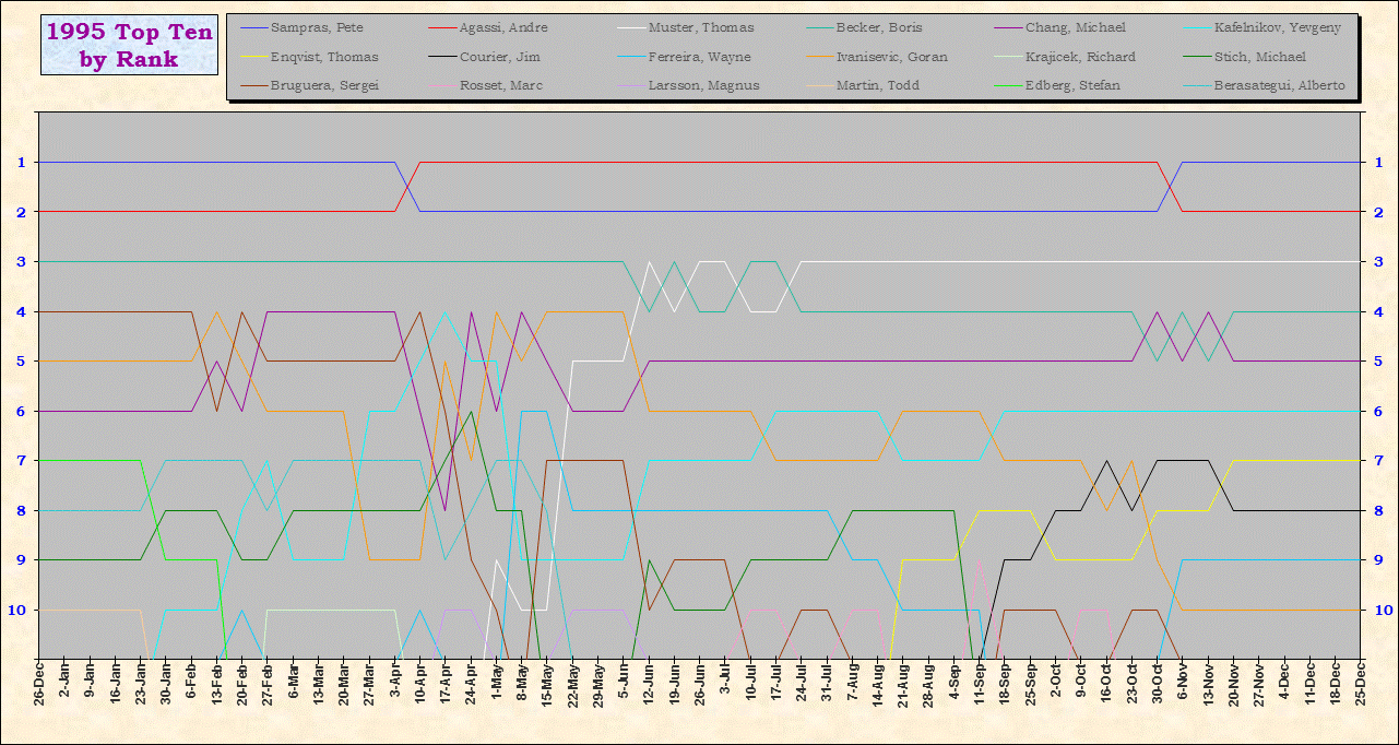 | Listed players appeared in the top ten for at least one week during 1995-2014. Recent additions: Milos Raonic |