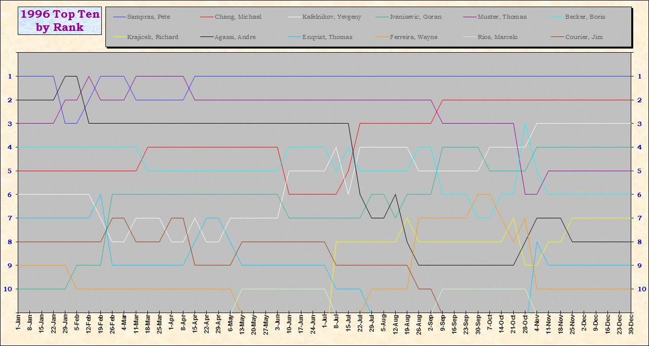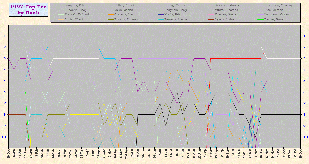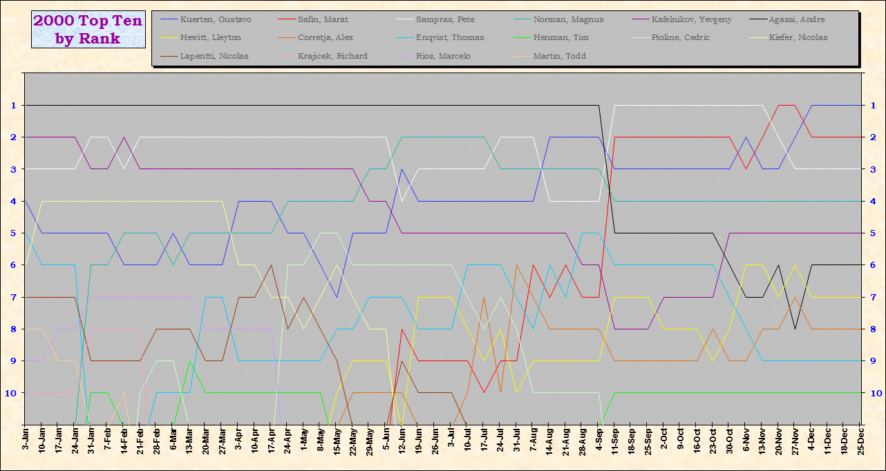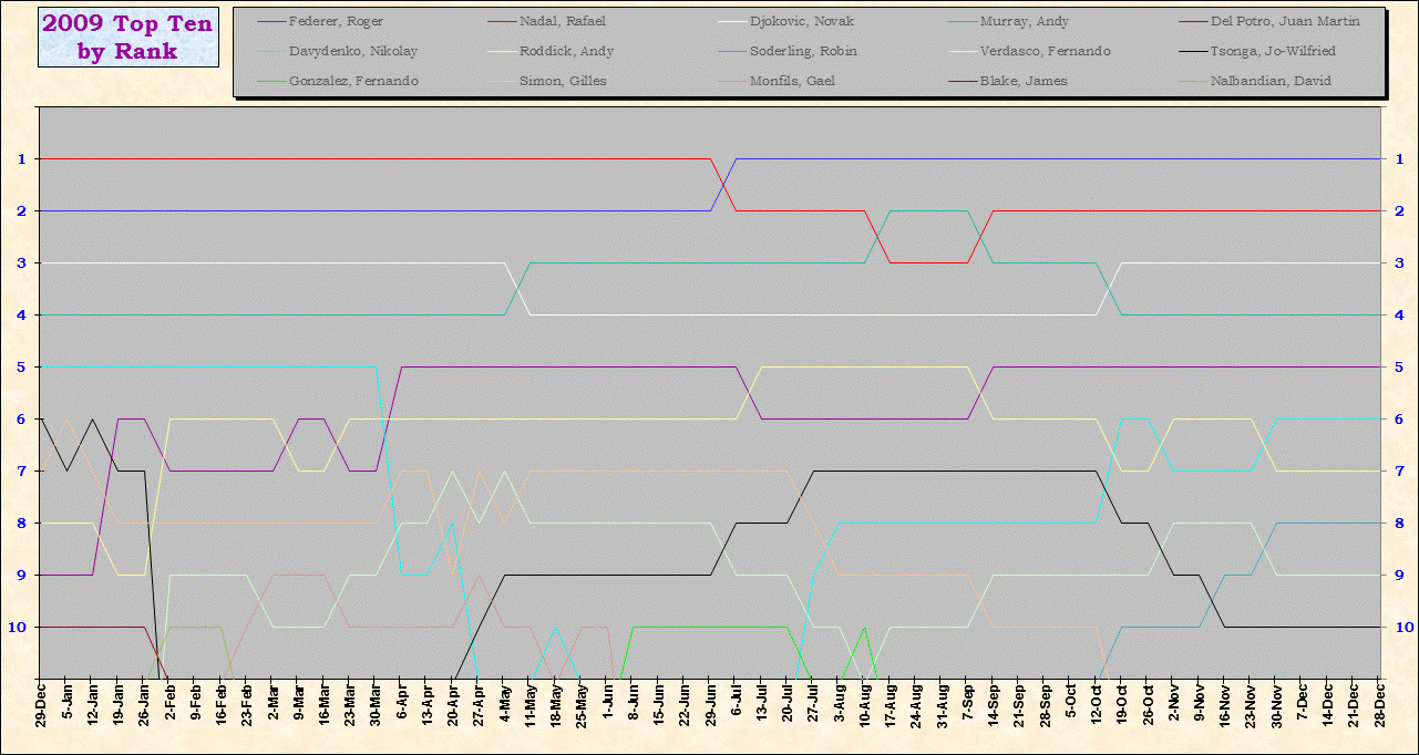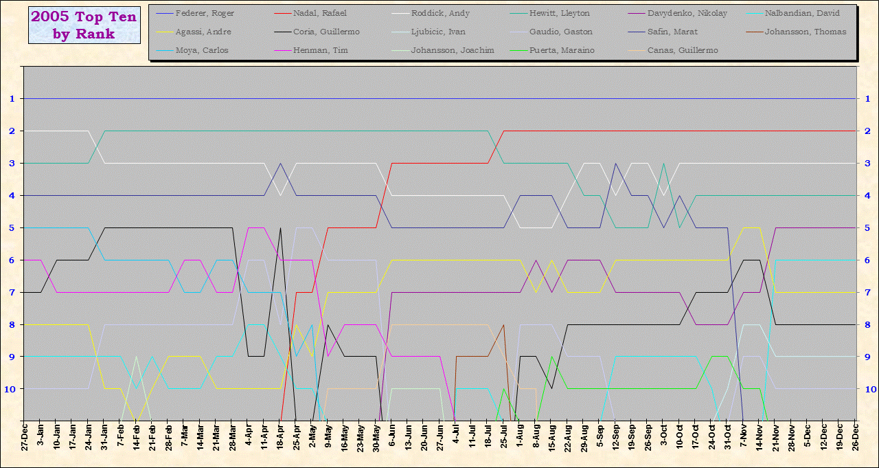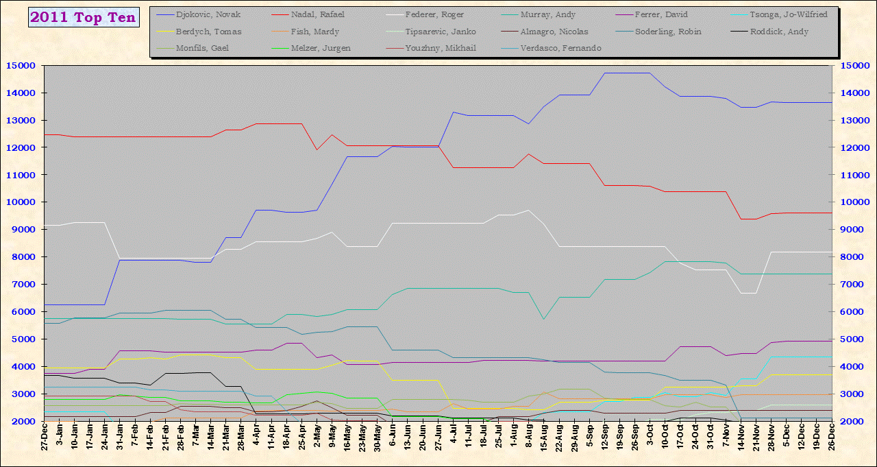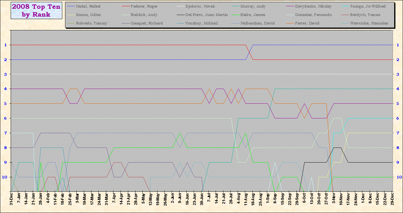 | Listed players appeared in the top ten for at least one week during 1995-2014. Recent additions: Milos Raonic |