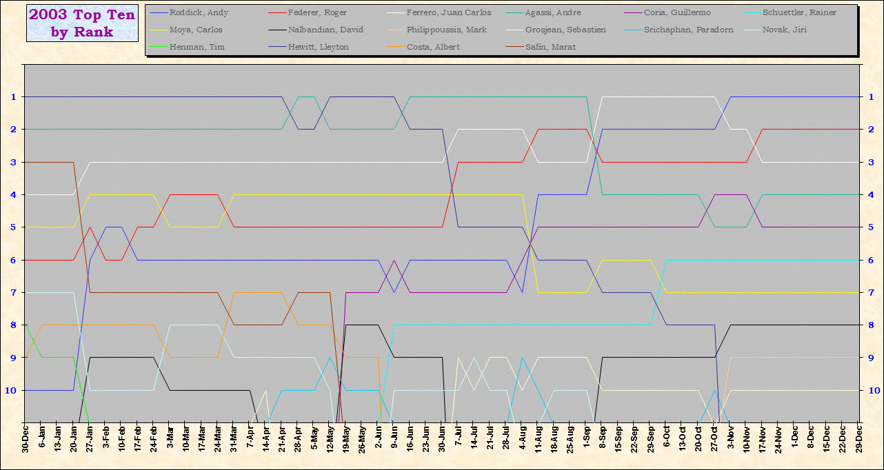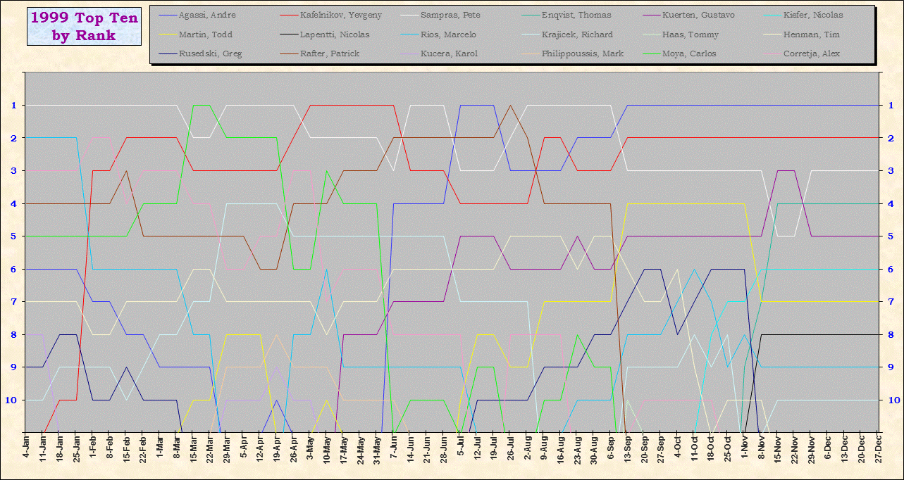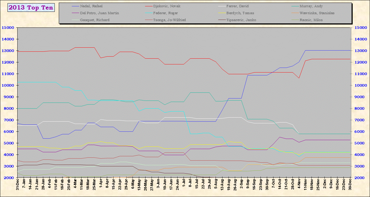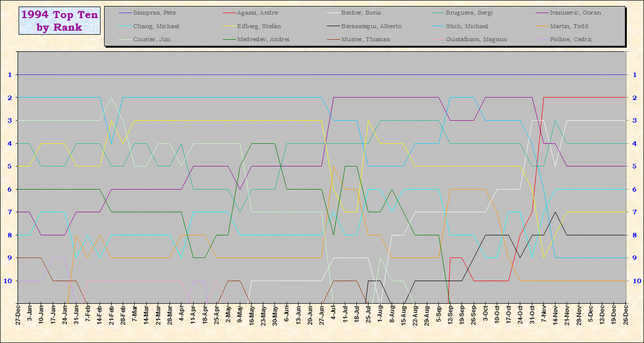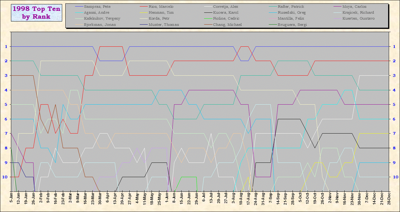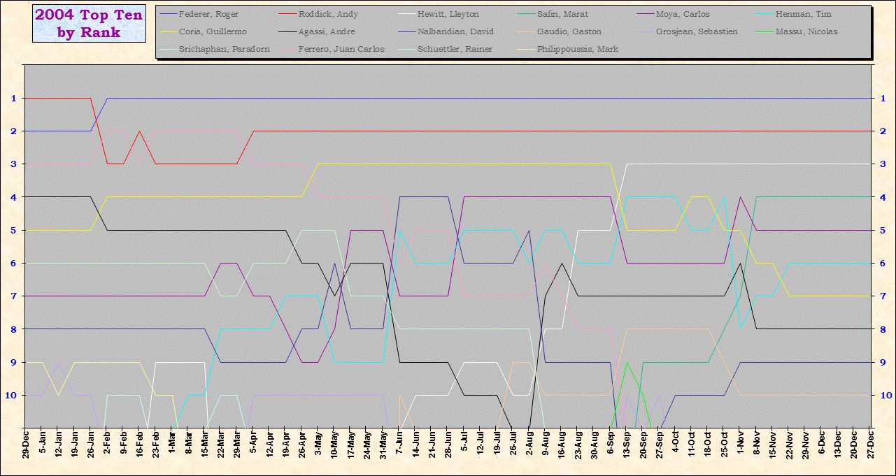 | Listed players appeared in the top ten for at least one week during 1995-2014. Recent additions: Milos Raonic |
