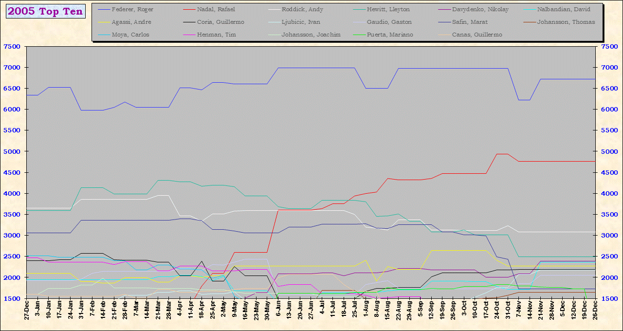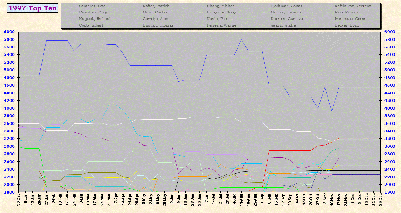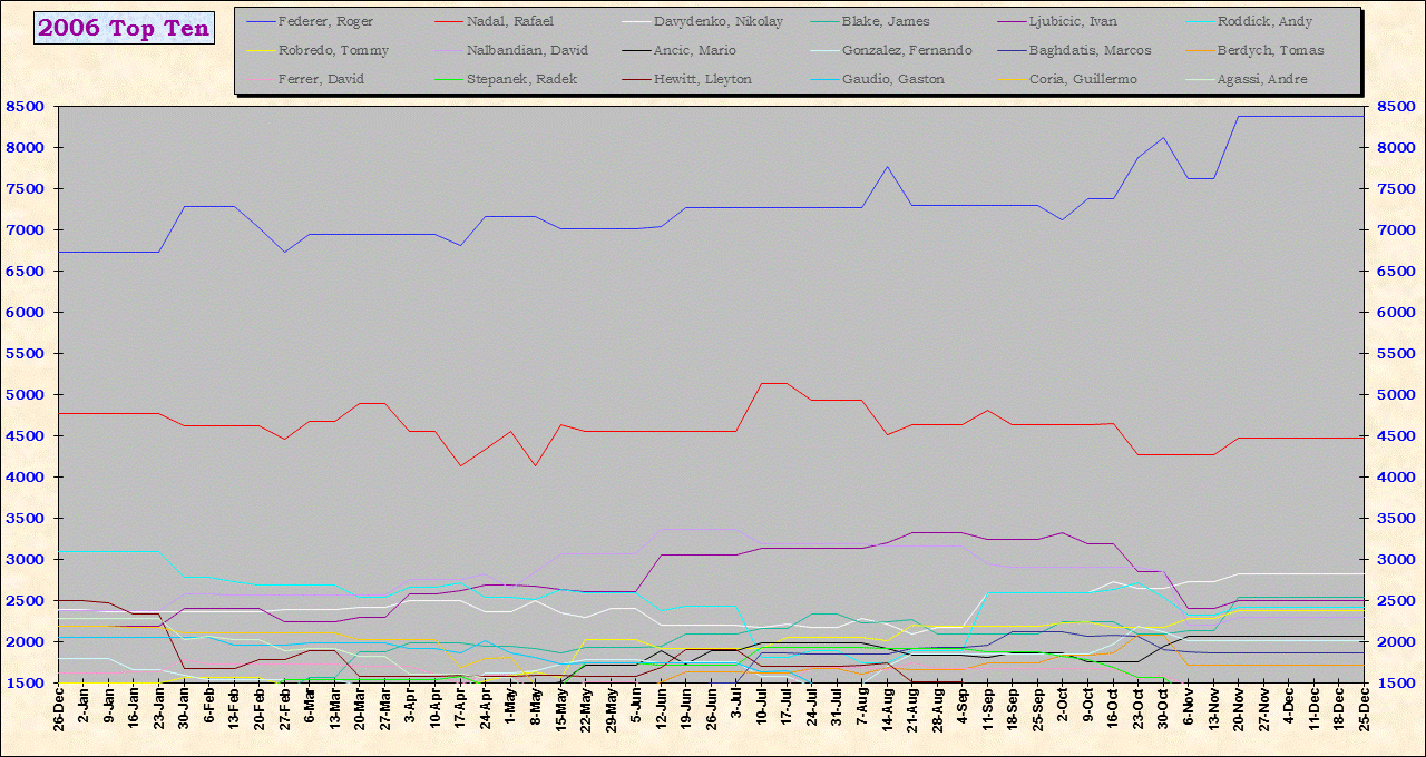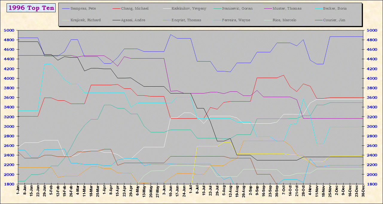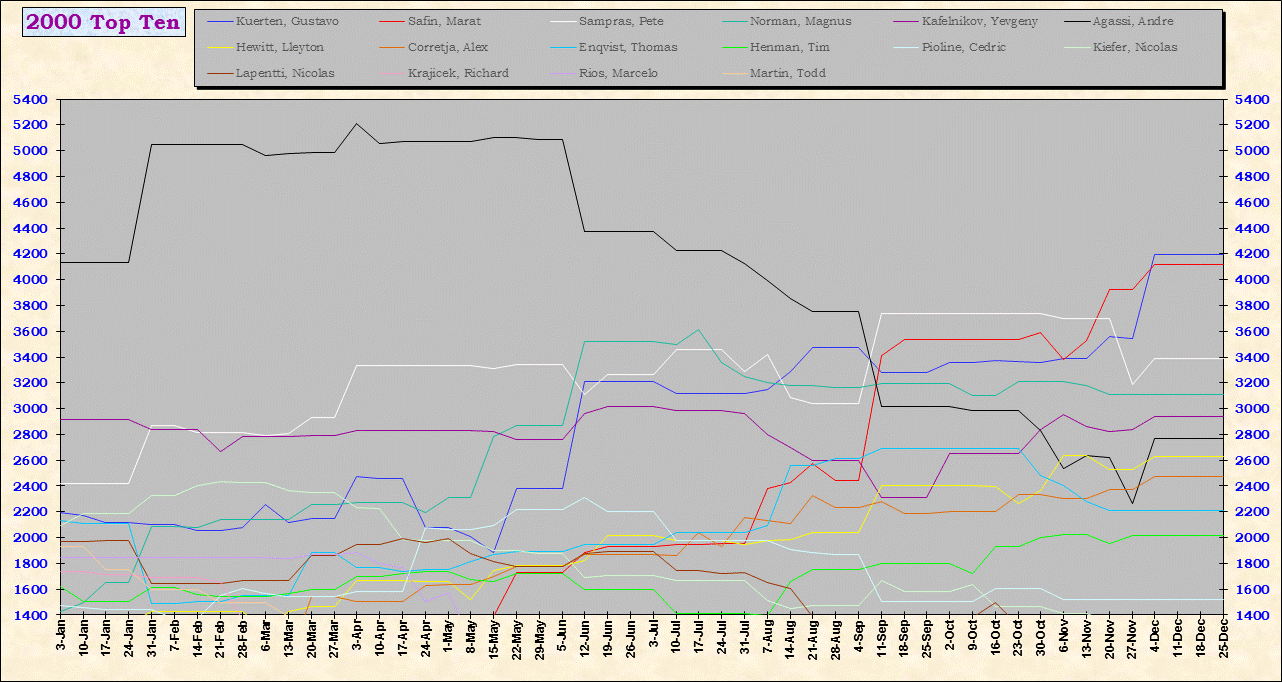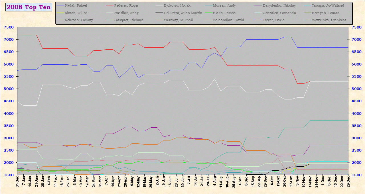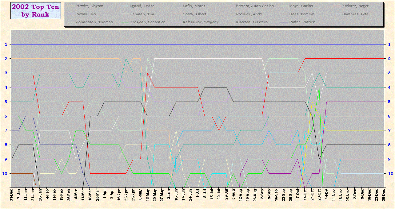 | Listed players appeared in the top ten for at least one week during 1995-2014. Recent additions: Milos Raonic |
