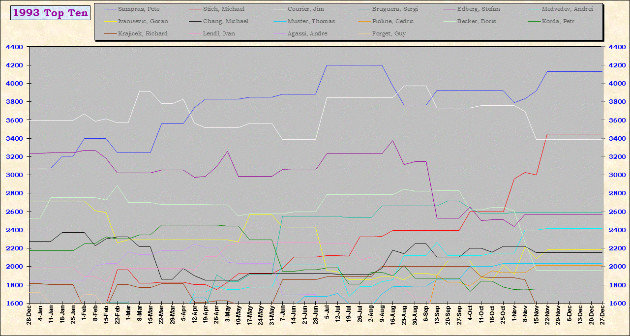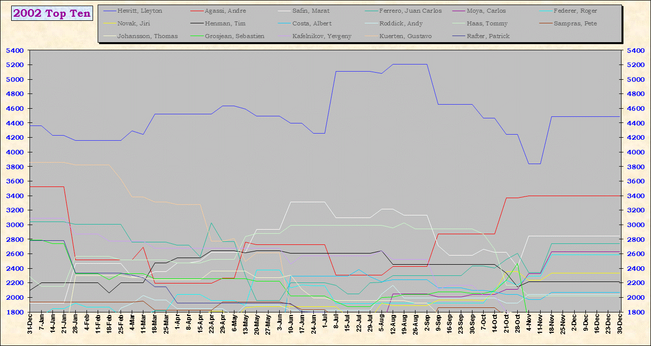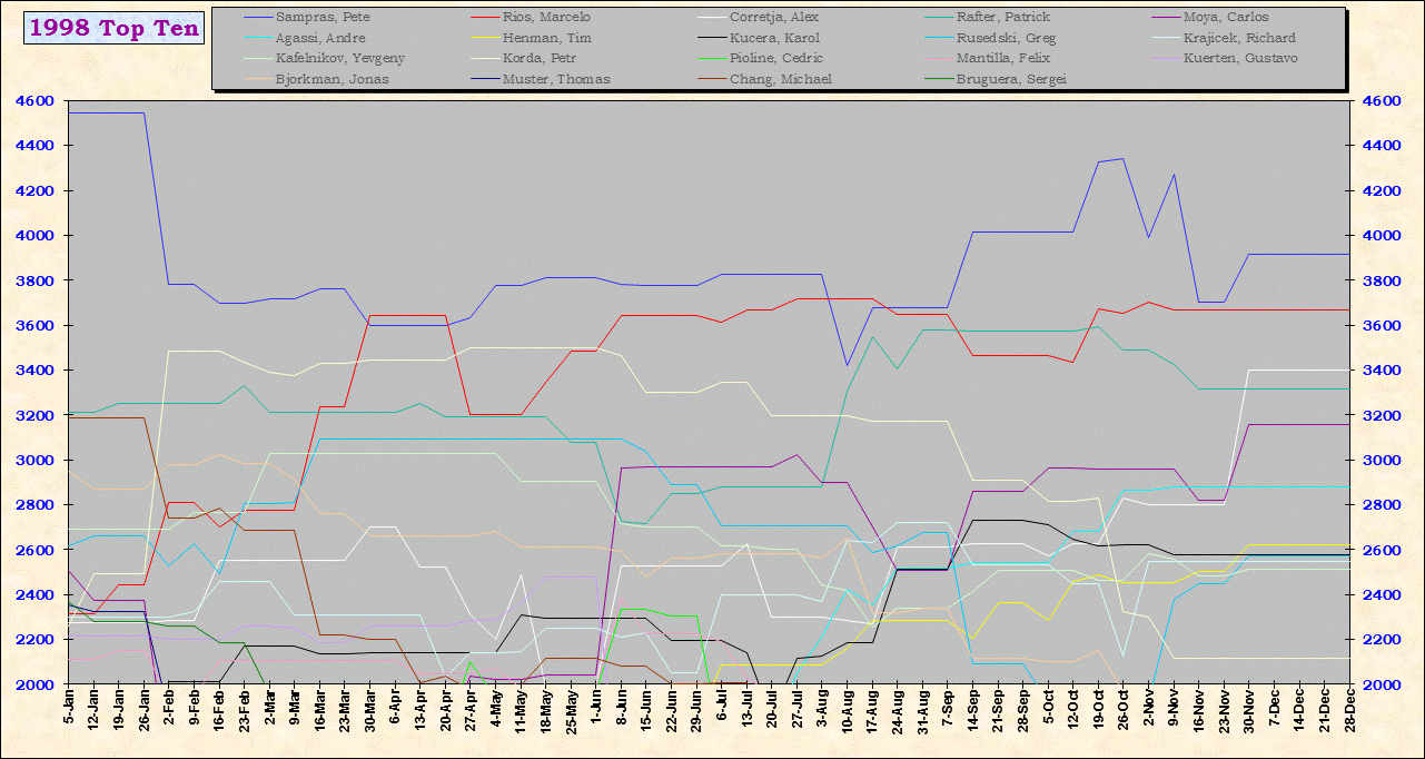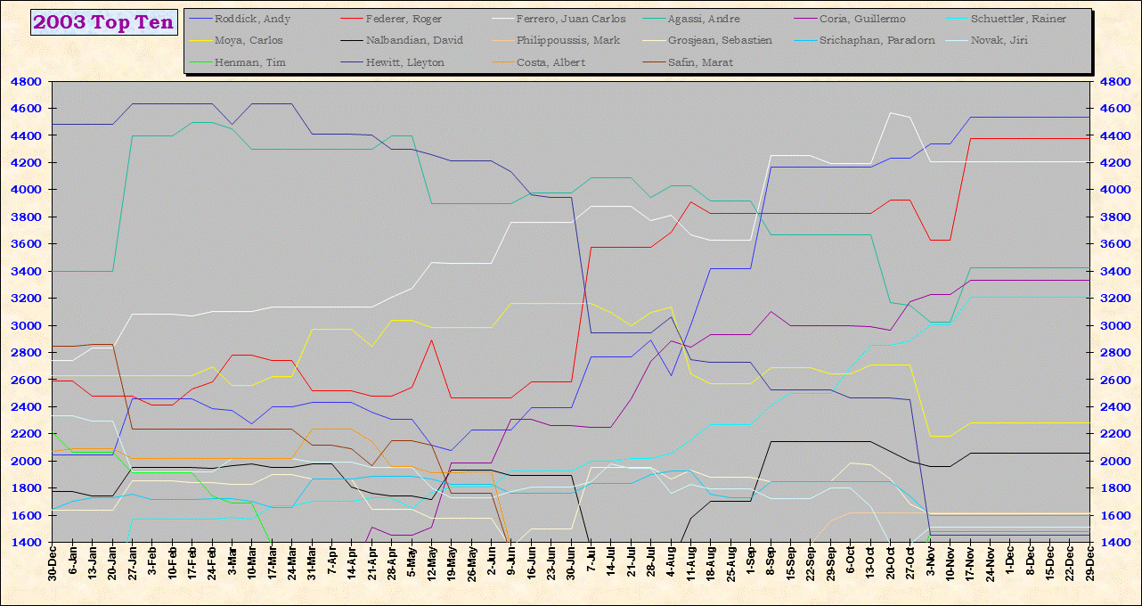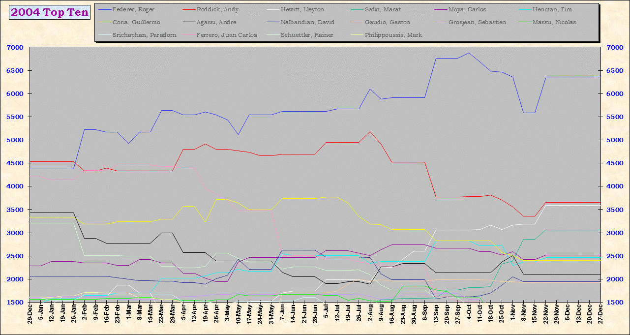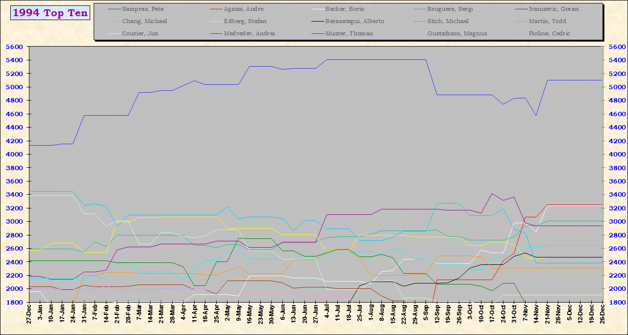 | Listed players appeared in the top ten for at least one week during 1995-2014. Recent additions: Milos Raonic |