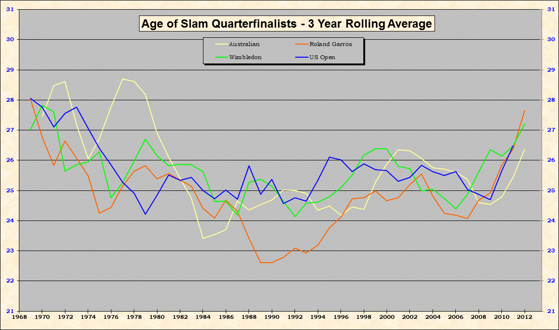 | 25 Oldest Slam QF 1968-2013 | ||||