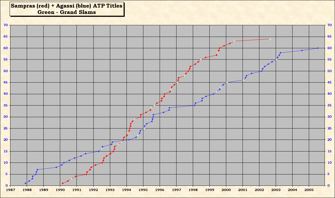 | Andre Agassi-Grand Slams | 8 | 7 | 11 | 10 | 6 | 3 | 7 | 9 | 61 |